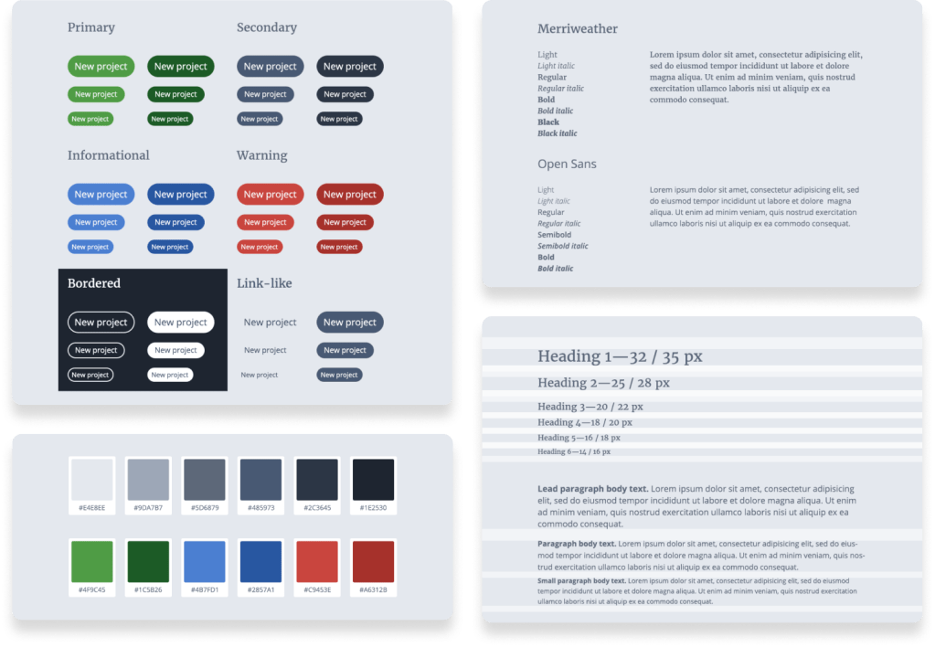 This was misleading, though. It created a false sense of systematisation. Although a primary button was consistent with other primary buttons, it existed alongside many custom components and plenty of one-off elements (added over time). To make matters worse, the Bootstrap customisation was implemented inline, which (from an engineering point of view) made it almost impossible to upgrade automatically or with little manual effort.