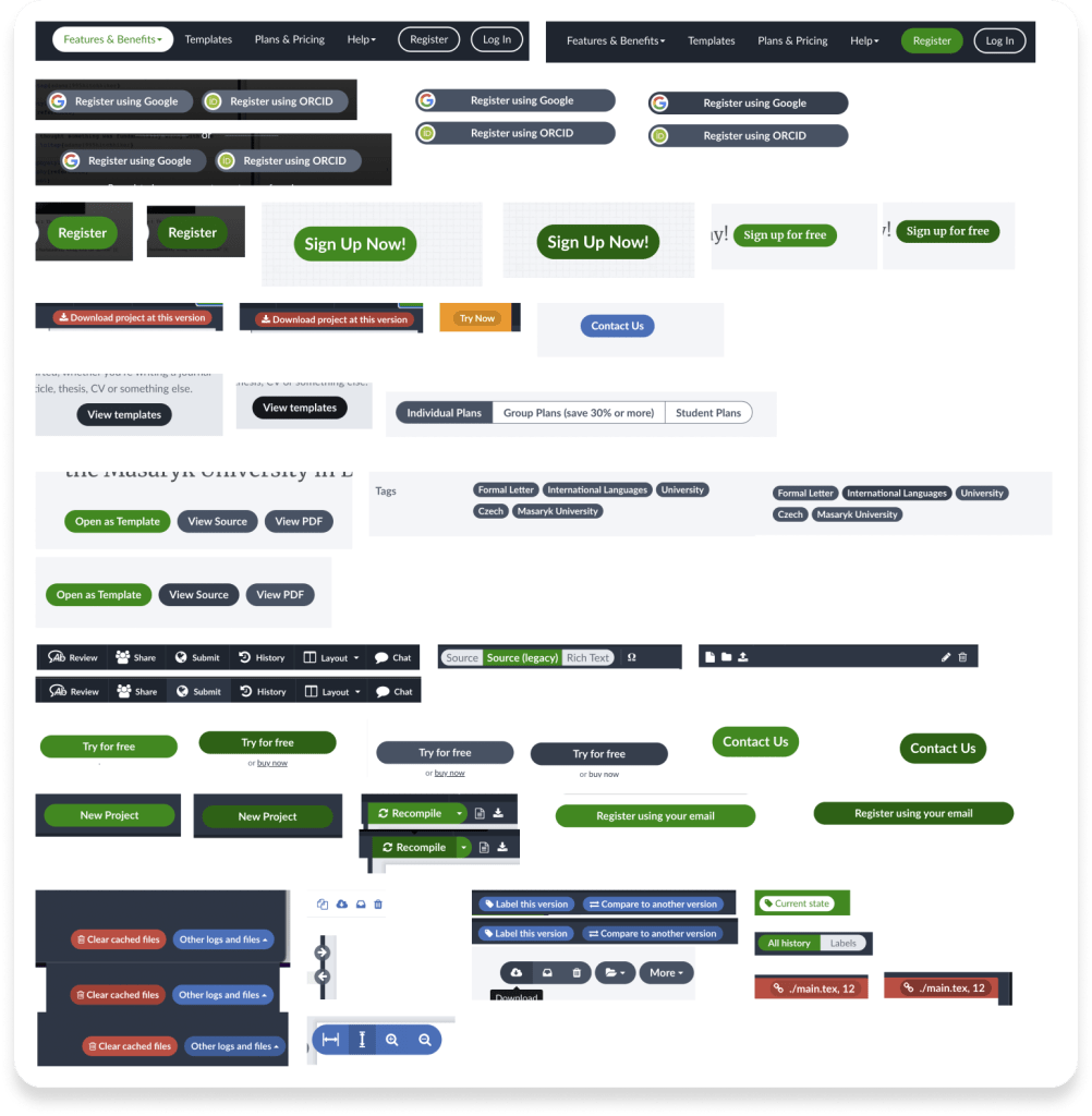 - We have prioritised consolidating buttons due to their prevalence throughout Overleaf’s UI, for higher visual and efficiency impact.