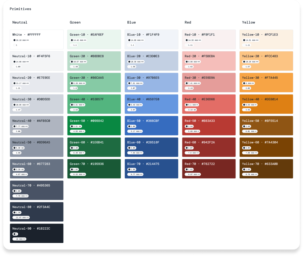Working with the team, we created a tiered approach to the design system, allowing gradual evolution and implementation, as well as separation of concerns.