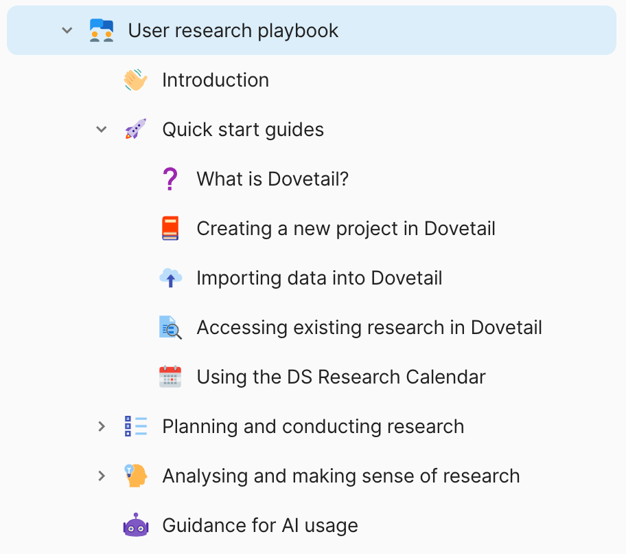 Beyond ensuring organisation-wide access, we’ve created the following artefacts to ensure consistency and scale up good research decisions: